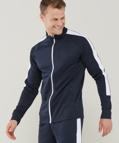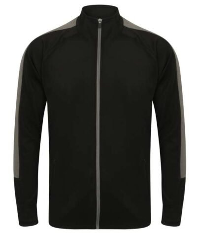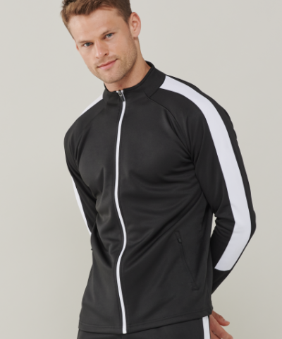 100% Polyester Interlock ;Contrast colour panels on outer sleeves ;Contrast colour centre from zip ;Zipped side pockets ;Funnel neck ;1×1 ribbed cuffs ;Semi-automatic lock zip sliders on all zips;