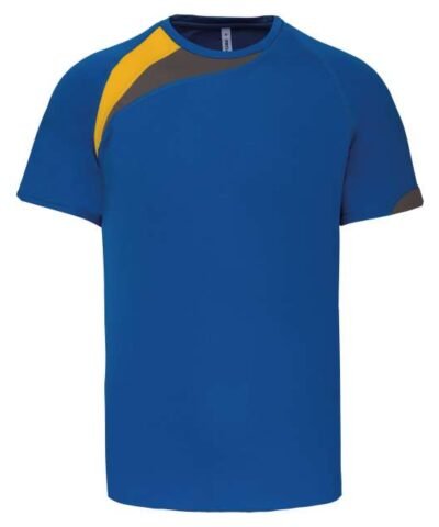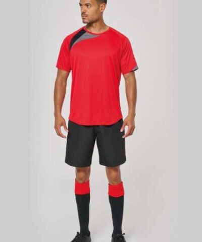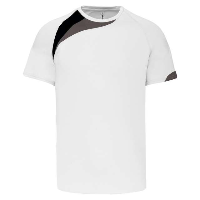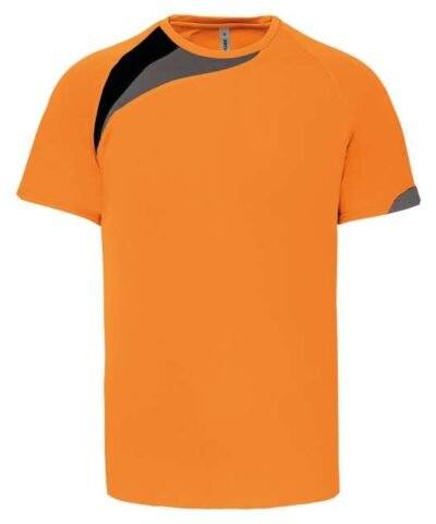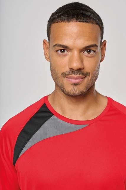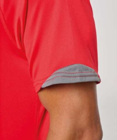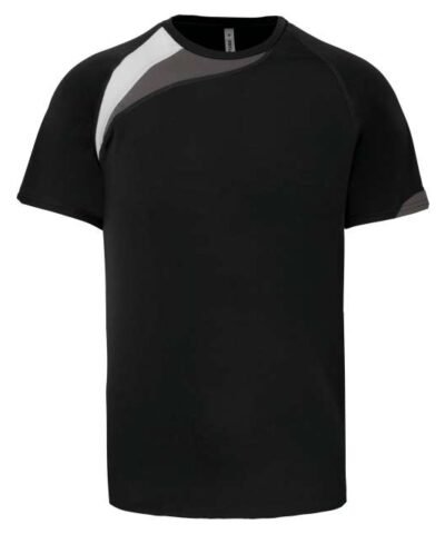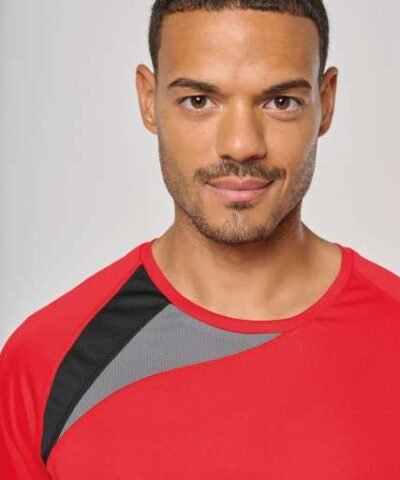 100% polyester;Contrast panels;Matching topstitch finishing;Twin needle finishing at the cuffs and hem;