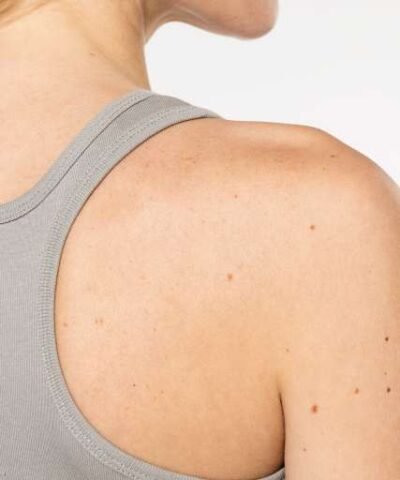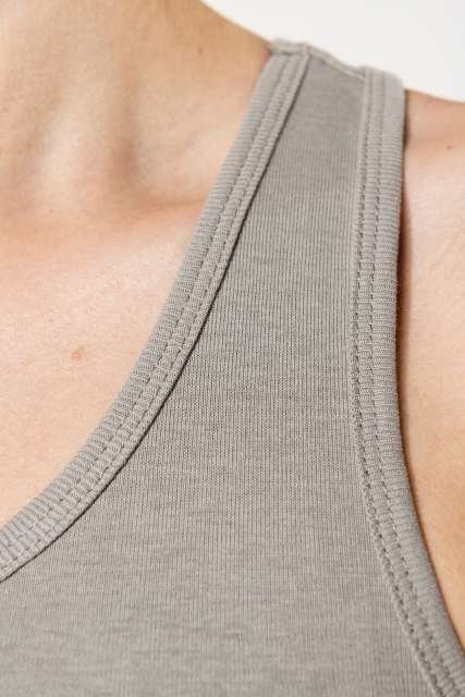 100% cotton;1 x 1 rib;Racer back style;Twin needle finishing;Certified STANDARD 100 by OEKO-TEX®N° CQ1007/7. IFTH;