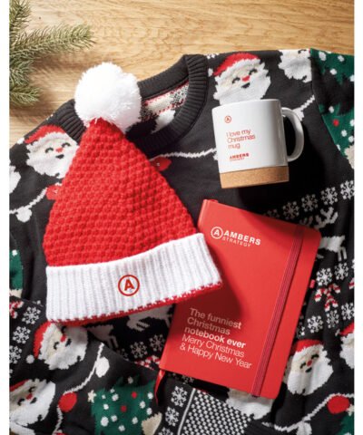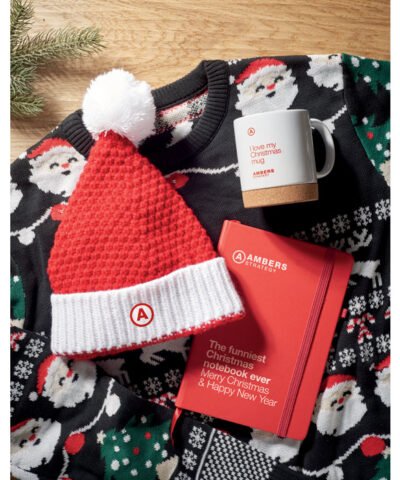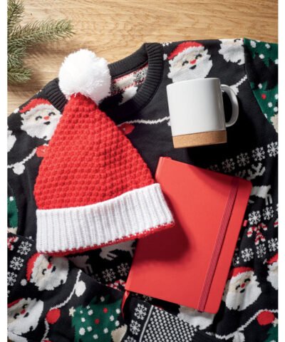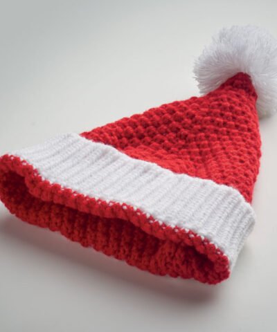 Christmas knitted beanie with cuff and bobble in soft stretchable acrylic.