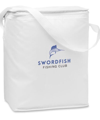 Cooler bag for 6 1,5l bottles in 210 polyester. With non woven white trimmings. 80gr/m². Isolation material: aluminium foil. Capacity 12,5L.