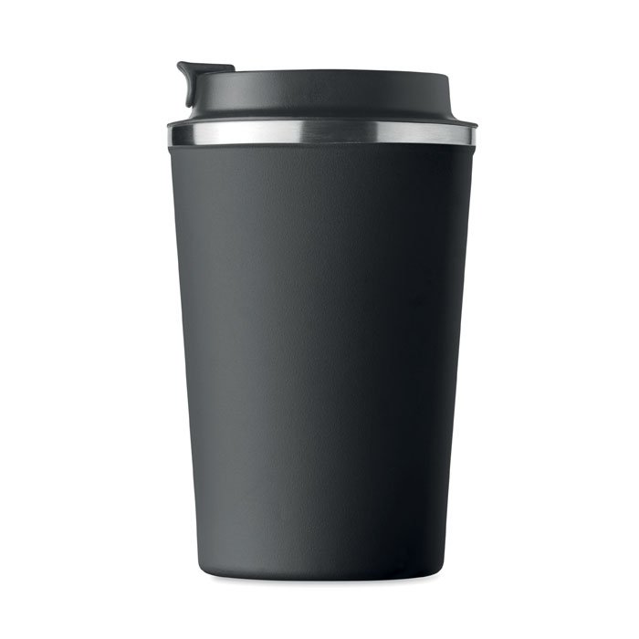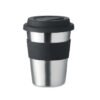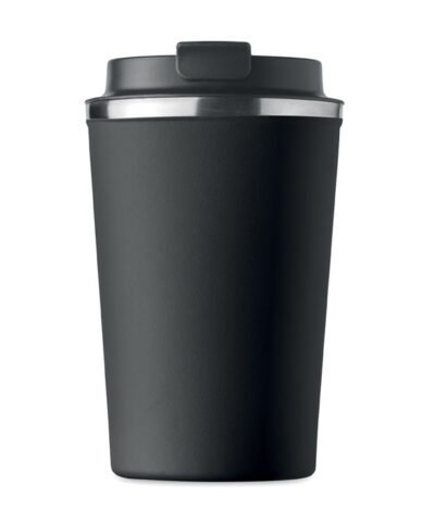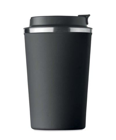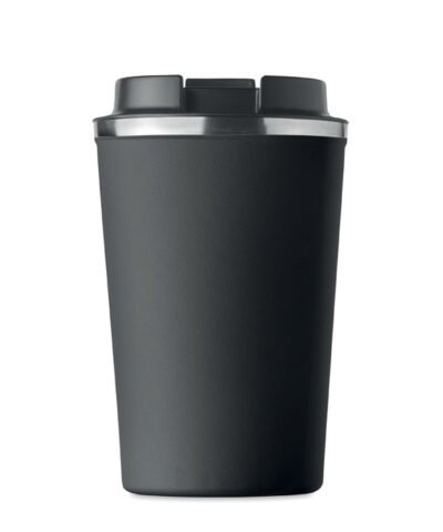 Double wall stainless steel tumbler with PP lid. Capacity: 350 ml. Leak free.