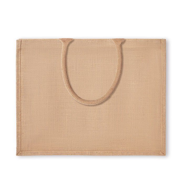 Jute laminated shopping bag with cotton padded. Short handles.