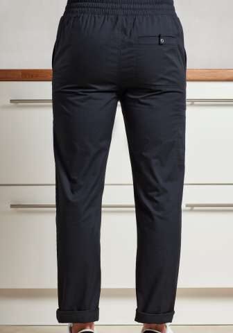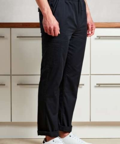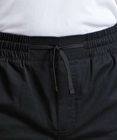 Fabric;65% Recycled Polyester. 35% Cotton;Features;Elasticated waistband and drawcord;Mock stitched fly;Multiple pockets;Tapered lower leg with optional turn-up hems;Made with recycled polyester;