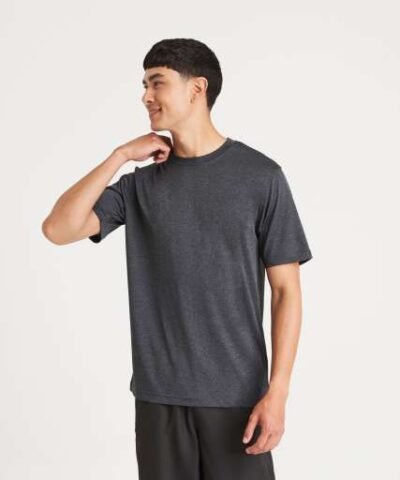 100% Polyester;Relaxed fit;Smooth marl performance fabric;Tear Away Label;Self-fabric crew neck;Twin needle stitching detail;Self-fabric taped back neck;UPF 30+ UV protection;Inherent stretch fabric properties;Set in sleeve design;