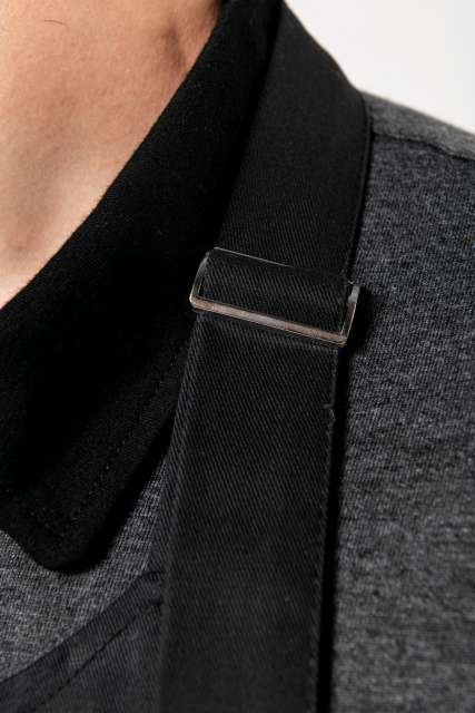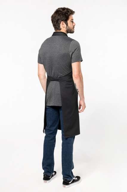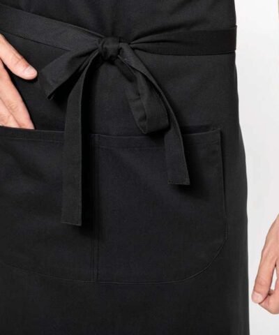 100% cotton;Domestic washing at 60°C;Industrial washing at 85°C in accordance with ISO 15797 requirement standards;Neck tie with metal buckle to adjust the length of the apron;Large front pocket with two compartments;Apron: Length 90 cm – Width 76 cm;Pocket: Length 20 cm – Width 31;5 cmCertified STANDARD 100 by OEKO-TEX®N° CQ1007/8. IFTH;