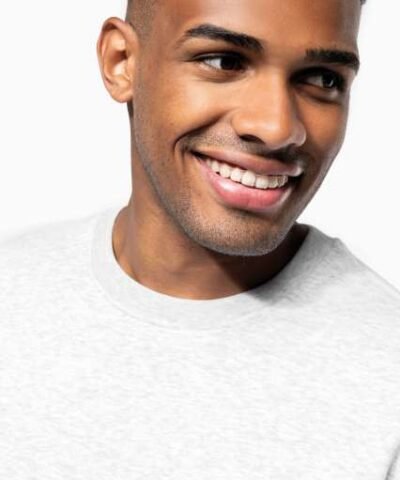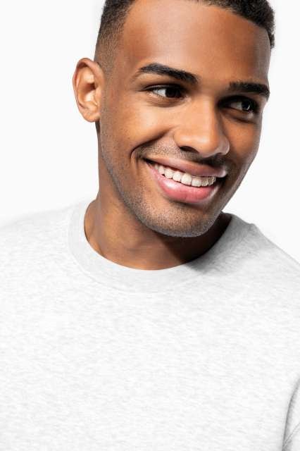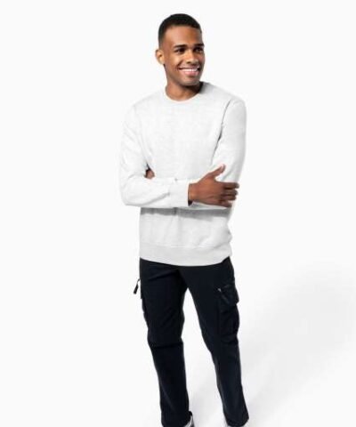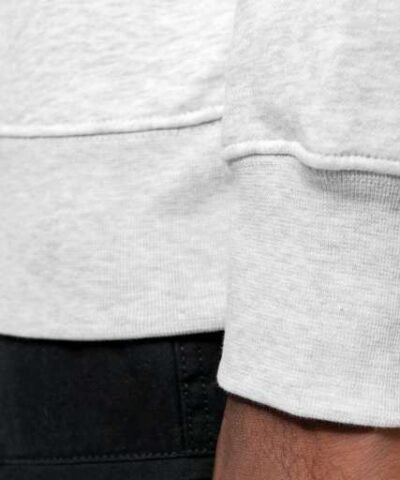 80% cotton / 20% polyester (Ash Heather: 79% cotton / 20% polyester / 1% viscose);LSF (Low Shrinkage Fleece) treatment;3-thread brushed fleece in combed cotton;Set-in sleeves;Contrasting taped neck (Oxford Grey contrast for all colours. except for Oxford Grey and Ash Heather body where neck tape is Navy);Ribbed cuffs and hem;Certified STANDARD 100 by OEKO-TEX®N° CQ1007/7. IFTH;