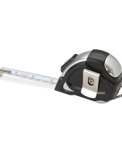 3m ABS measuring tape in silver case. Includes hand strap and shiny silver metal clip.