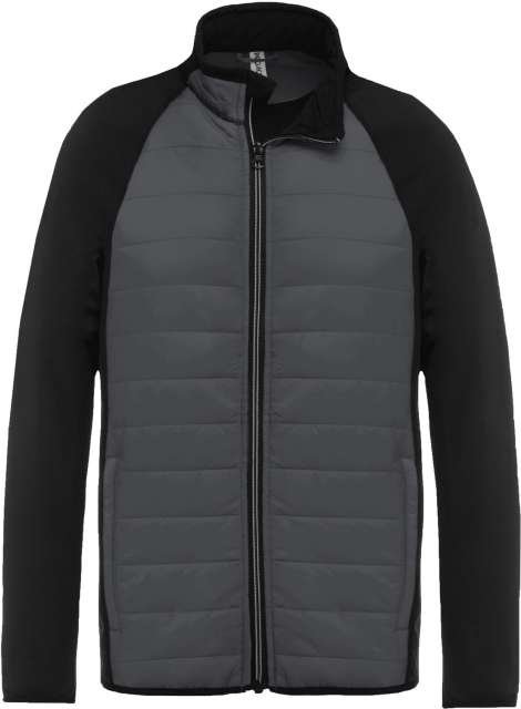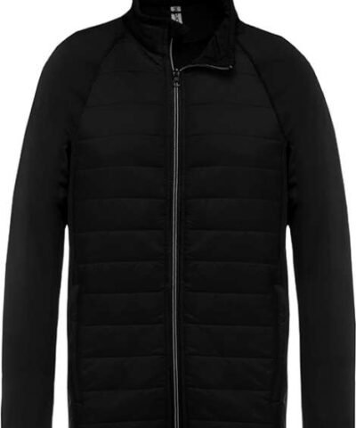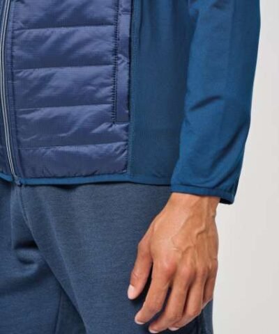 Outer: 100% polyamide ripstop body;90% polyester/10% elastane sleeves and back (Marl grey/ Sporty navy: 100% polyester);Inner padding: 100% polyester;Ultra-comfortable fabric with water-repellent treatment;2 zipped front pockets;Contrast zip;Elasticated binding at neck. sleeves and hem;