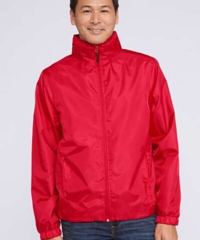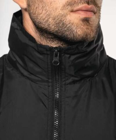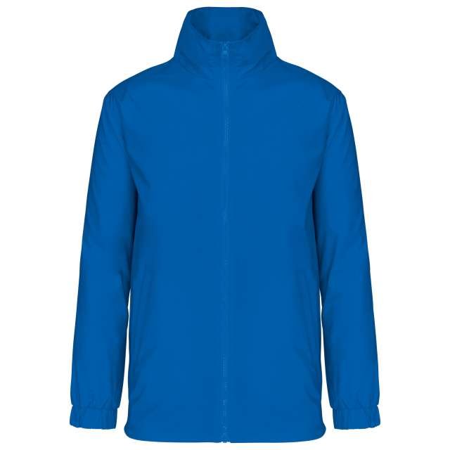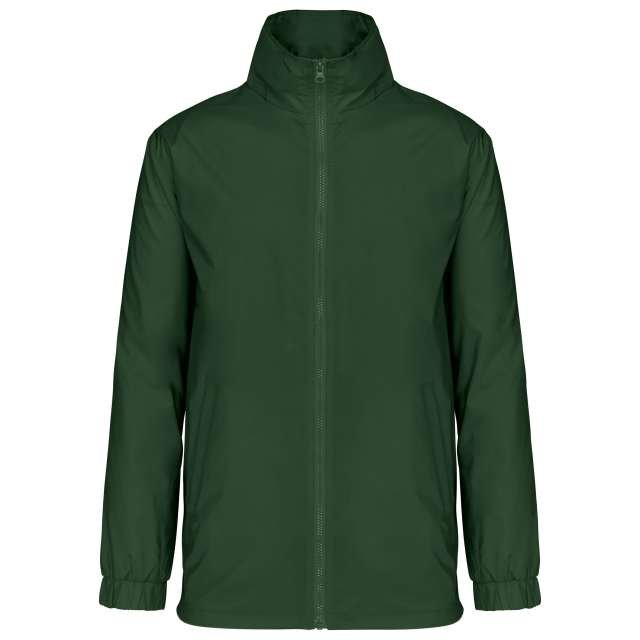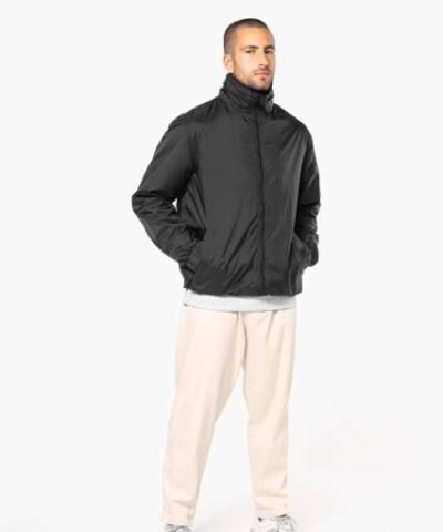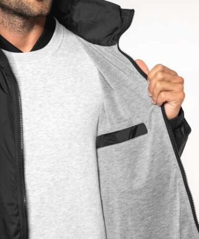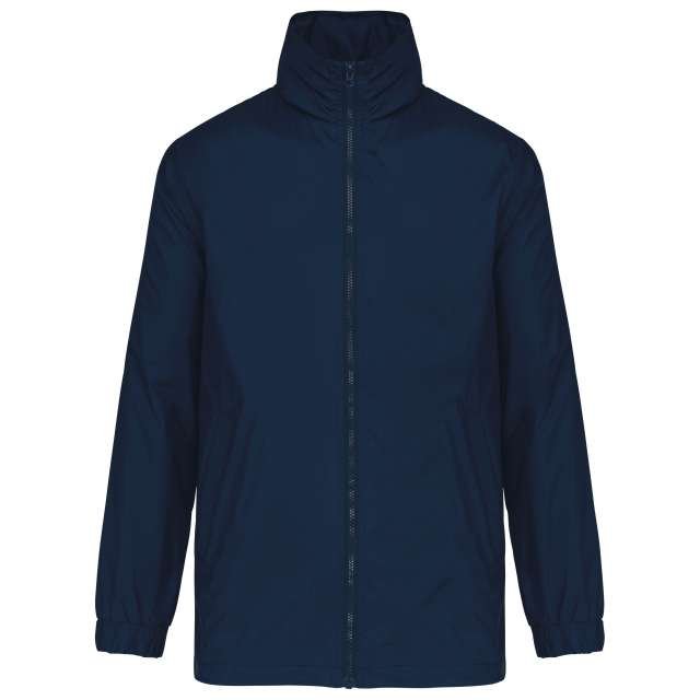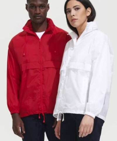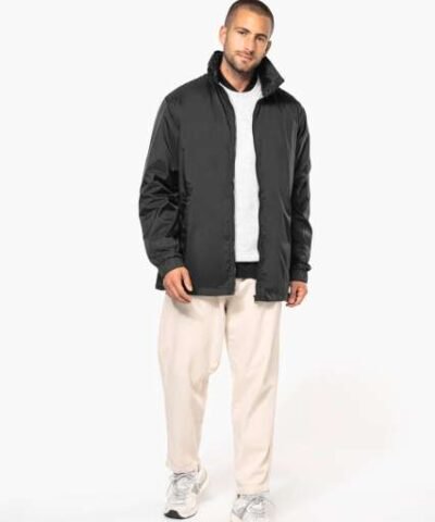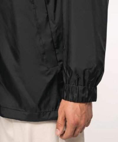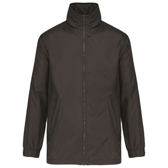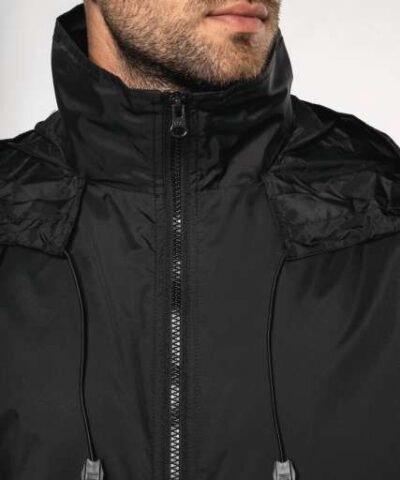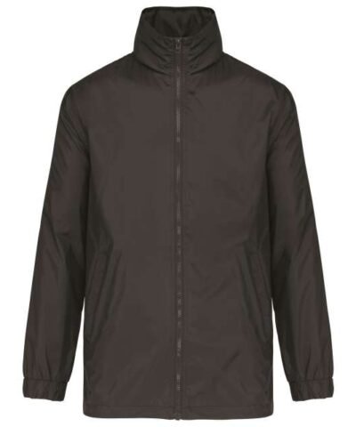100% 210 T polyamide with acrylic coating;100% polyester Heather Grey jersey lining;Concealed hood with elastic drawcord;Zip through front;1 inner pocket and 2 front pockets;Elasticated drawcord with toggles at hem;Zip access for decoration;