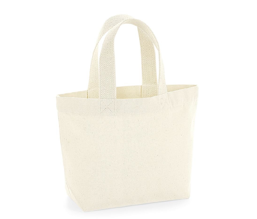 100% Organic Cotton Canvas – 340gsm (10oz/yd²). Premium heavyweight fabric. Cotton webbing carry handles. Dimensions: 26 x 21 x 10 cm. Handle length: 34 cm. Capacity: 4 litres. Maximum Embroi