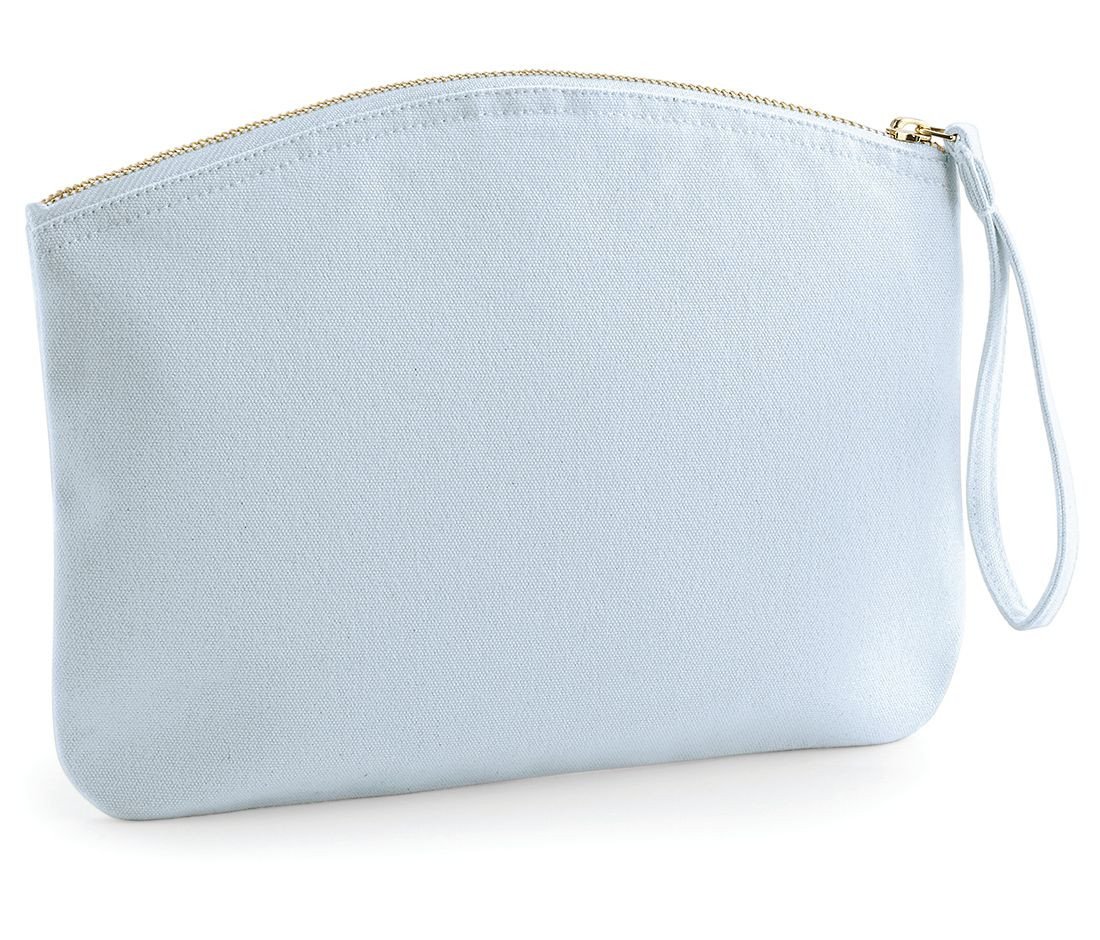 100% Organic Brushed Cotton Canvas – 407gsm (12oz/yd²). Premium heavyweight fabric. Zippered closure. Wristlet strap. Multi-purpose use. Available in two sizes – S and L. Dimensions: L – 28 x
