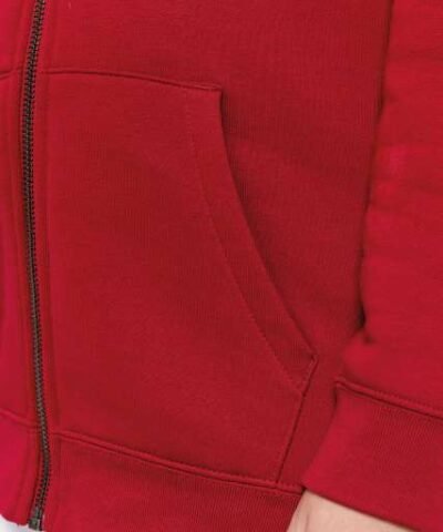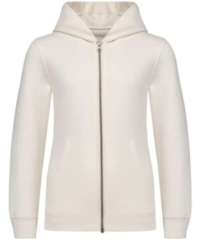 85 % organic cotton / 15 % post-consumer recycled polyester;Ringspun combed cotton;Straight fit;3-ply brushed fleece LSF (Low Shrinkage Fleece: pre-shrunk fleece);Enzyme-washed;Recycled metal zip;1/2 circle in the back;Kangaroo pocket with single overstitching;1 x 1 rib bottom hem and cuffs;Double overstitching on cuffs. armholes and bottom hem;Double dart hood in main material;Zip inner finished with Jersey bias tape;Inner taped neck with herringbone;