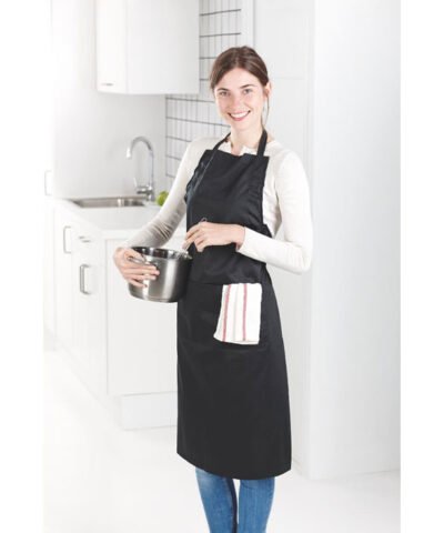Adjustable kitchen apron with 2 front pockets in 10% cotton/90% polyester, 190gr/m².