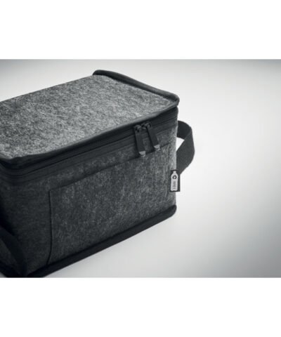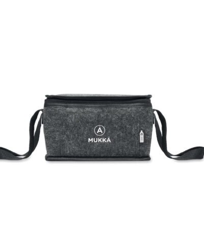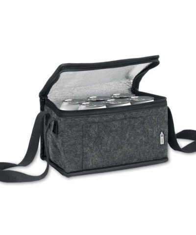 RPET felt cooler bag with front pocket. 1mm RPET felt and 3 mm insulation aluminium laminated foil. Capacity: 5L.