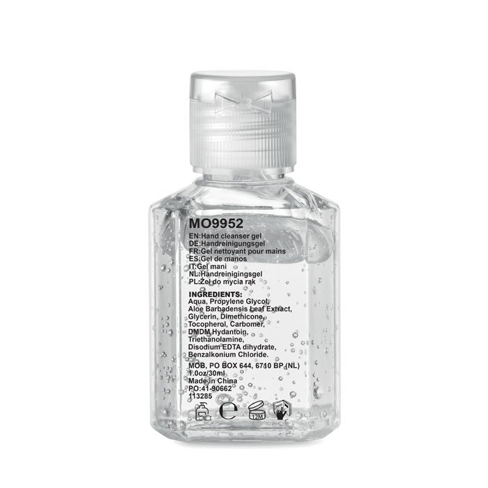 Hand cleanser gel in PET bottle with flip cap. Capacity 30 ml. Non- alcohol formulation. This product is classified as a cosmetic item.