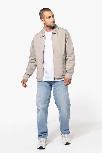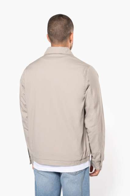 100% cotton;Canvas fabric;Shirt collar;2 zipped and piped front pockets;1 inner pocket;Elasticated hem at sides;Press-stud cuffs;Inner: cotton poplin tartan-lined body and polyester taffeta-lined sleeves;Metal zipper;Invisible zip access at left chest and hem for decoration;