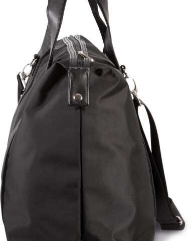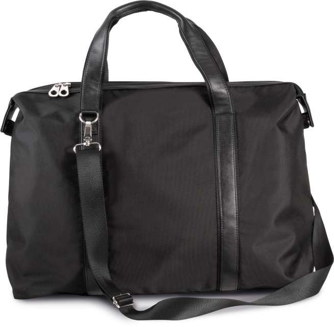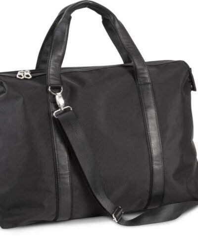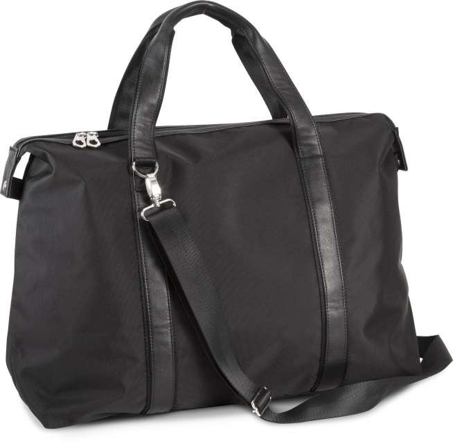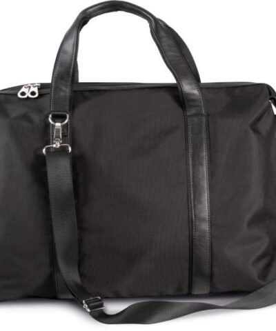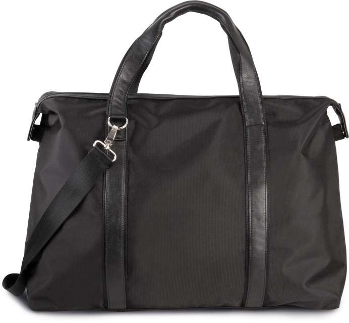 900D polyester holdall travel bag with contrast trimming along top zip closure;210D polyester lining;Contrast handle and straps with webbing reinforcement;Detachable webbing shoulder strap;Stabiliser feet;