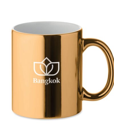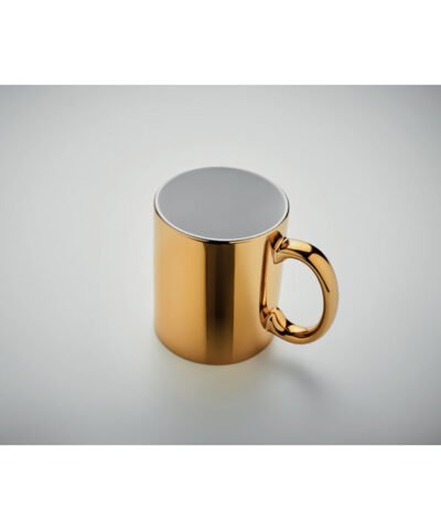 Classic cylindrical ceramic mug with metallic finish. Capacity : 300 ml.