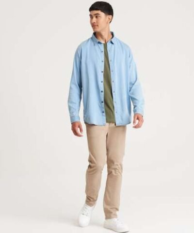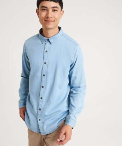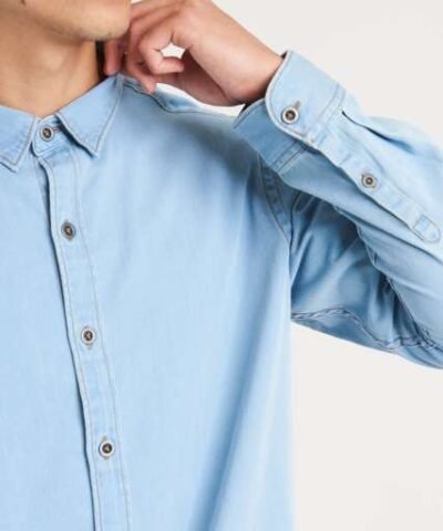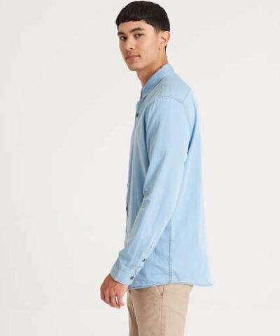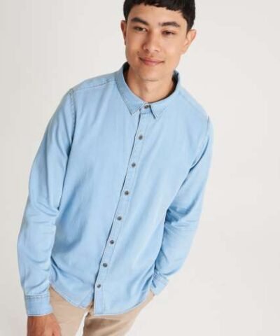100% Cotton;Relaxed fit;No pockets for maximum embellishment area.;Narrow collar;Back yoke ;Satin weave;Button placket centre front fastening;Turned hem with single needle stitch detail ;Single needle contrast at armholes collar and front placket;2 button placket at cuff;