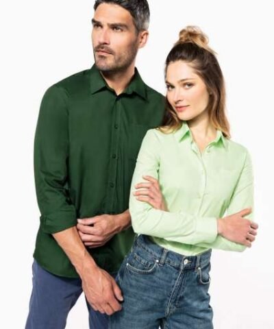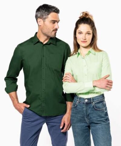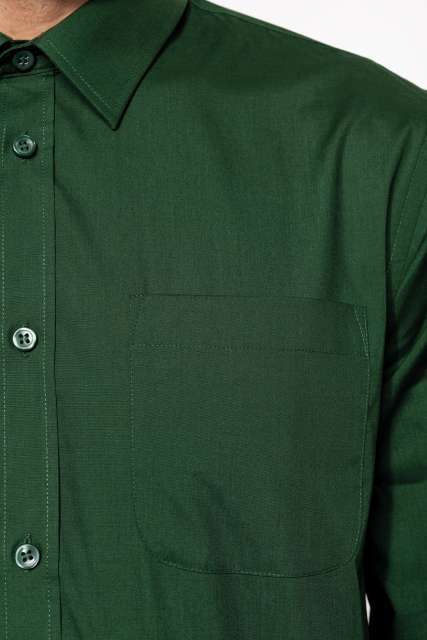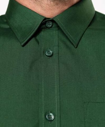 65% polyester / 35% cotton poplin;Easy-care fabric;Cut-away boned collar;Matching buttons;Rounded chest pocket on left side;Double back yoke;Felled seams;Adjustable rounded button cuffs with placket;2 spare buttons;Certifié STANDARD 100 by OEKO-TEX®N° CQ1007/8. IFTH;
