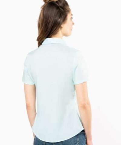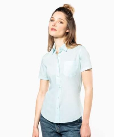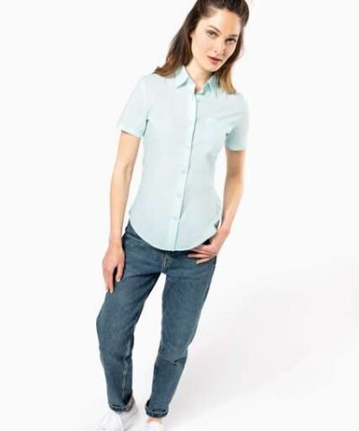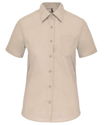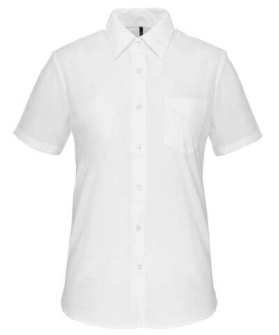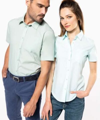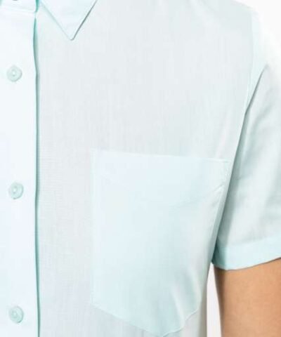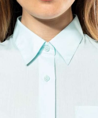 65% polyester / 35% cotton poplin;Easy-care fabric;Soft collar;Matching buttons;V-shaped chest pocket on left side;1 spare button;Shaped hem;Certifié STANDARD 100 by OEKO-TEX®N° CQ1007/8. IFTH;