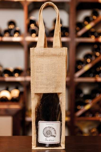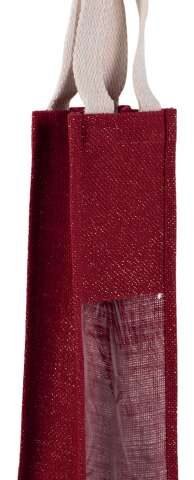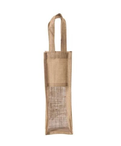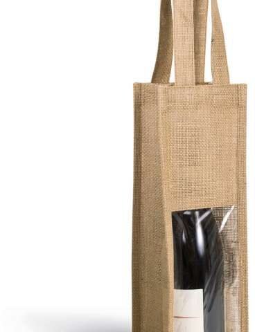 Jute canvas bottle bag. with 2 handles and transparent window on front;Designed for 1 bottle;