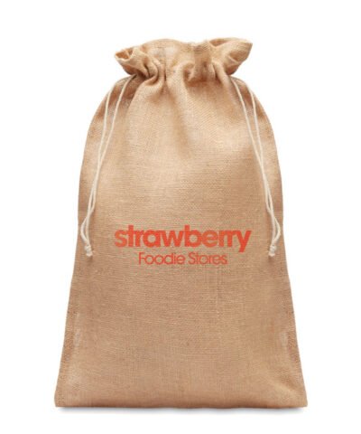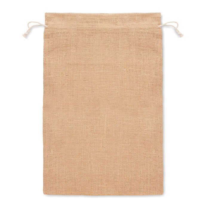 Large gift jute draw cord bag. Size approx. 30×47 cm.