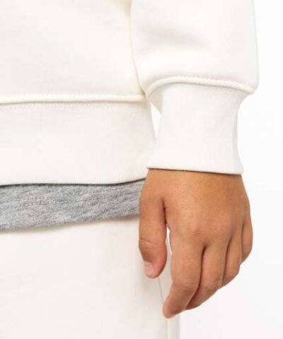 85% organic cotton / 15% post-consumer recycled polyester;Ringspun combed cotton;Straight fit;Brushed 3-ply fleece. LSF (Low Shrinkage Fleece);Enzyme-washed;1/2 circle in the back;1 x 1 rib neckline. bottom hem and cuffs;Double overstitching on cuffs. armholes and bottom hem;Single overstitching on neckline;Inner taped neckline with herringbone;