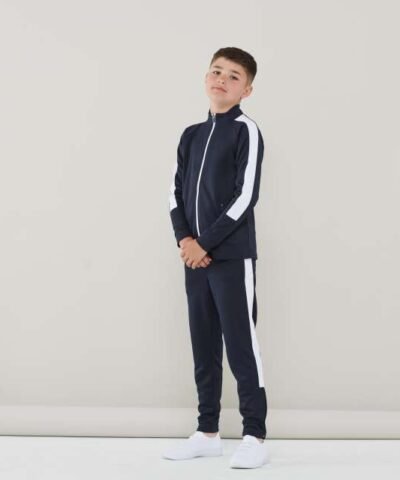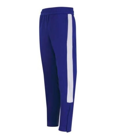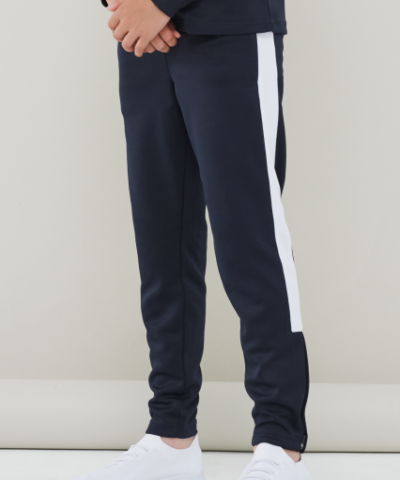 100% Polyester Interlock ;Slim leg ;Contrast colour side panels ;Zipped side pockets ;Elasticated waist with internal drawcord ;Ankle zips with zip guards and semi-automatic lock zip sliders;
