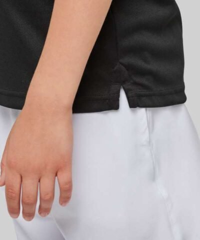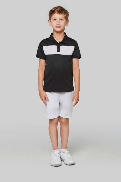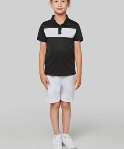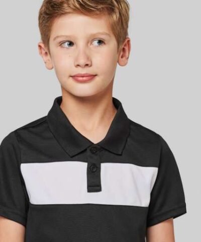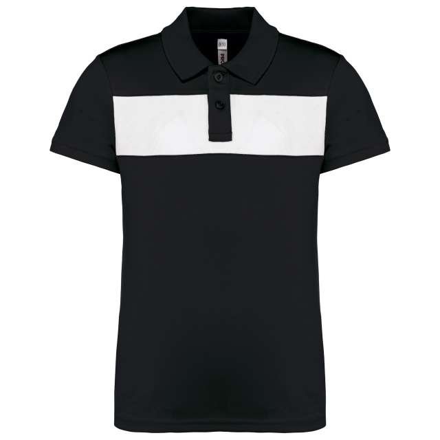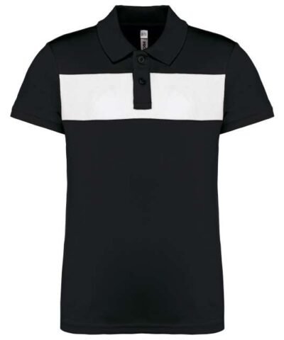 100% polyester;Interlock knit;Contrasting chest yoke;Ribbed collar with taped neck;Placket with 2 matching buttons;Side slits;Twin-needle finish on cuffs and hem;