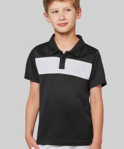 100% polyester;Interlock knit;Contrasting chest yoke;Ribbed collar with taped neck;Placket with 2 matching buttons;Side slits;Twin-needle finish on cuffs and hem;