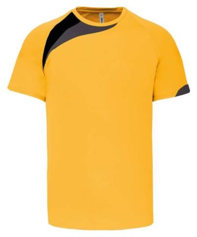 100% polyester;Contrast panels;Matching topstitch finishing;Twin needle finishing at the cuffs and hem;