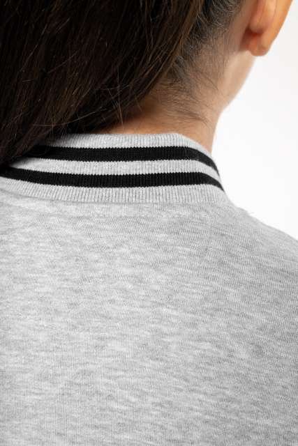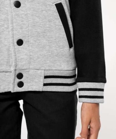 70% cotton/30% polyester;3-thread brushed fleece;Contrasting set-in sleeves;Press stud closure;Ribbed neck. sleeves and hem with contrasting stripe details;2piped front pockets;Twill taping and hanging loop at inner collar;No brand label at neck. only size tag for easy rebranding;A true fashion icon. you can see it everywhere. from streets to schools and even on red carpets;
