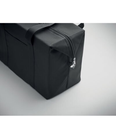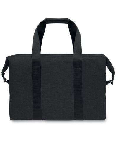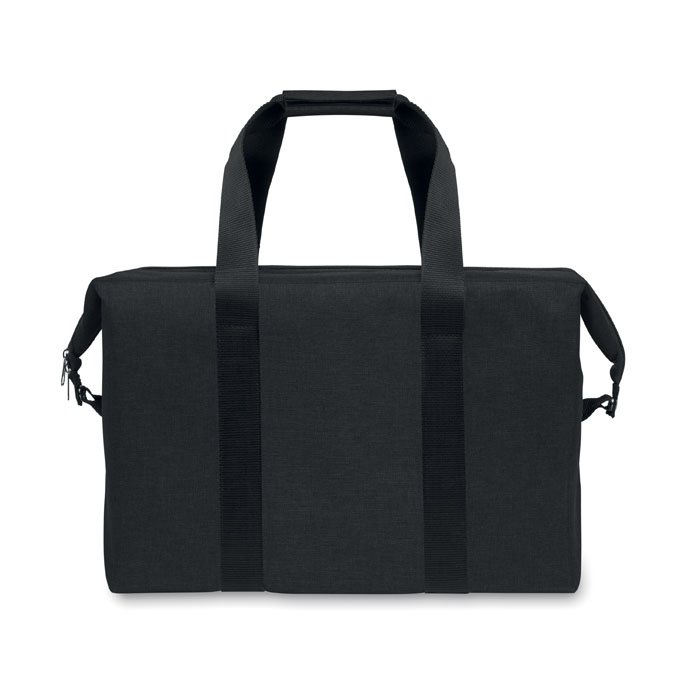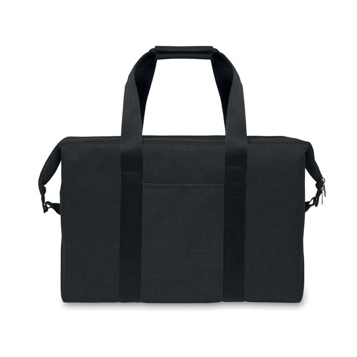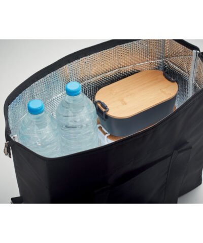 Cooler bag in RPET 300D cationic polyester. Isolation material: 3mm foam laminated with aluminium foil. Capacity 3L.