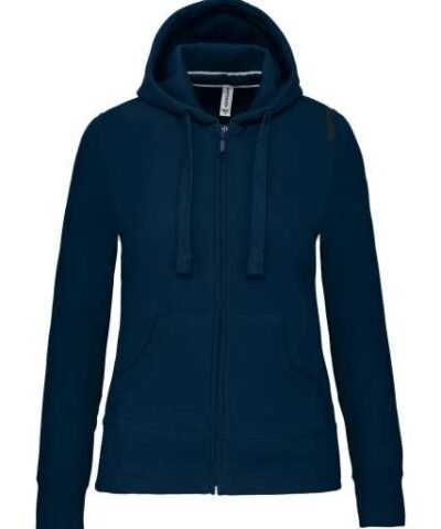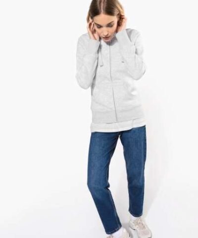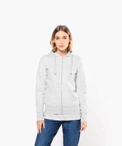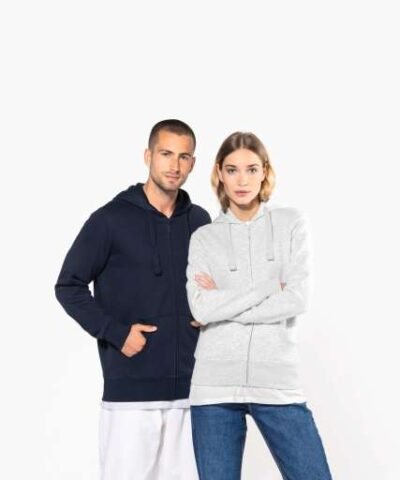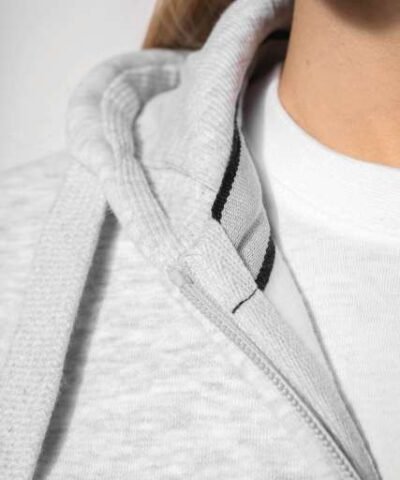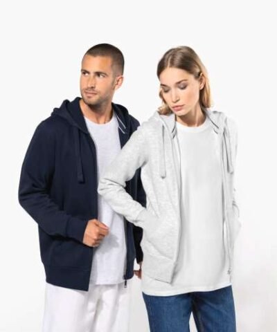 80% combed cotton/20% polyester (Ash Heather: 79% cotton / 20% polyester / 1% viscose);Brushed fleece;Contrasting neck tape (Navy for Oxford Grey and Ash Heather colourway Oxford Grey for all other colourways);Waffle-lined hood;Kangaroo pockets;Ribbed cuffs and hem;Zip fastening;Certified STANDARD 100 by OEKO-TEX®N° CQ1007/7. IFTH;