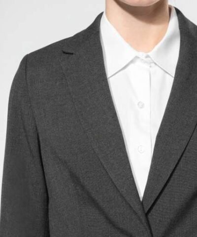 64% polyester / 34% viscose / 2% elastane;100% polyester taffeta lining;1 button jacket;2 front piped pockets;2 buttoned inner pockets;Cuffs with 3 buttons;1 back slit;Certified STANDARD 100 by OEKO-TEX®N° CQ1007/8. IFTH;