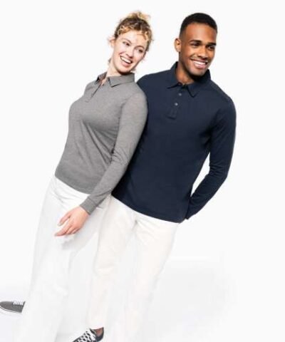 100% cotton (Grey Heather: 65% polyester / 35% cotton – Oxford Grey: 90% cotton / 10% viscose);Jersey knit fabric in combed cotton;Shirt collar;Placket with 4metal buttons;Shoulder yoke;Ribbed cuffs;Twin needle finish at hem;Certified STANDARD 100 by OEKO-TEX®N° CQ1007/7. IFTH;