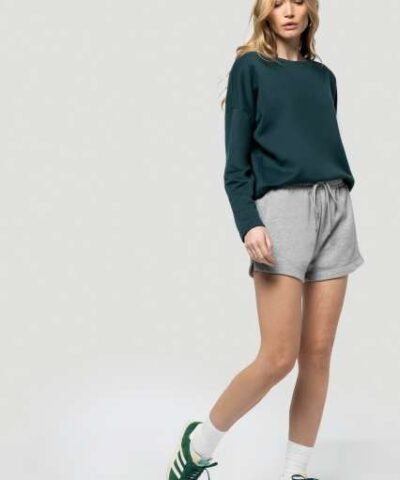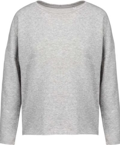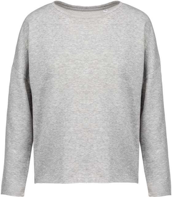 91% cotton / 9% polyester (Light Grey Heather: 87% cotton / 9% polyester / 4% viscose);French terry;Ultra-soft fabric;Loose. relaxed fit with wide neck;Twill taped neck;Raw edge finish at hem;Twin needle finishing at cuffs;No brand label at neck. only size tag for easy relabelling;Certified STANDARD 100 by OEKO-TEX®N° CQ1007/7. IFTH;
