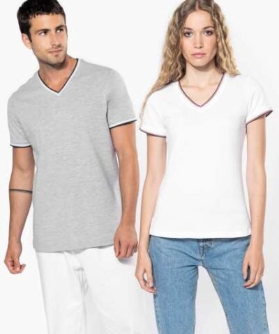 100% combed cotton piqué (Oxford Grey: 90% cotton/10% viscose);Rib finishing with contrasting stripes at neck and cuffs;Contrasting taped neck and side slits;Twin needle finishing at hem;Certified STANDARD 100 by OEKO-TEX® N° CQ 1007/7. IFTH;