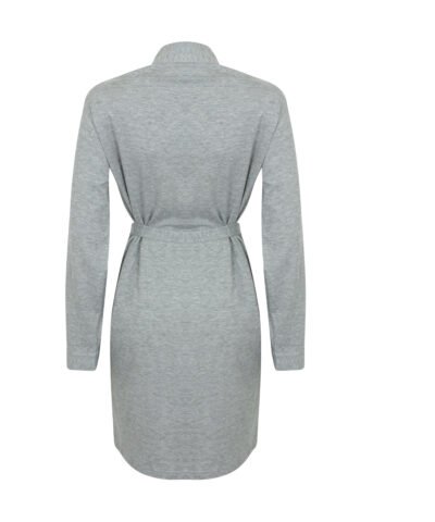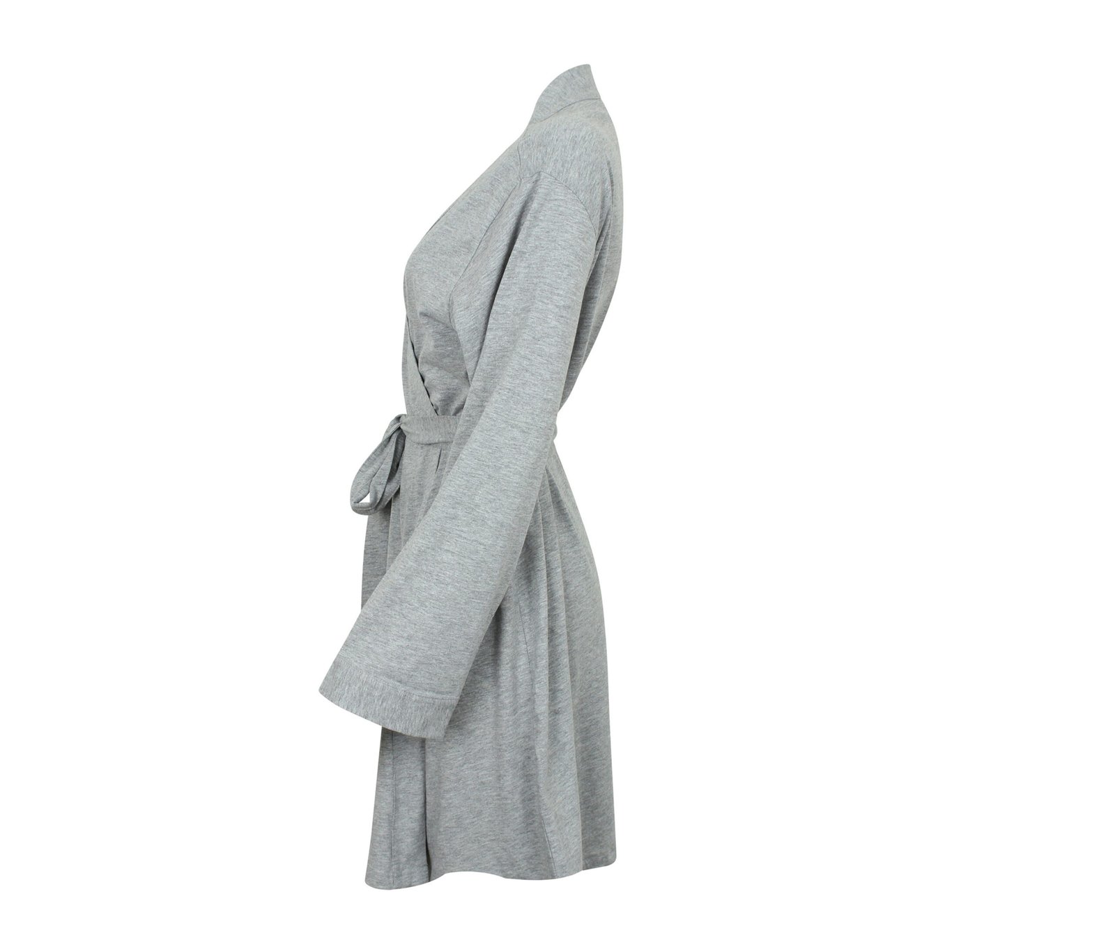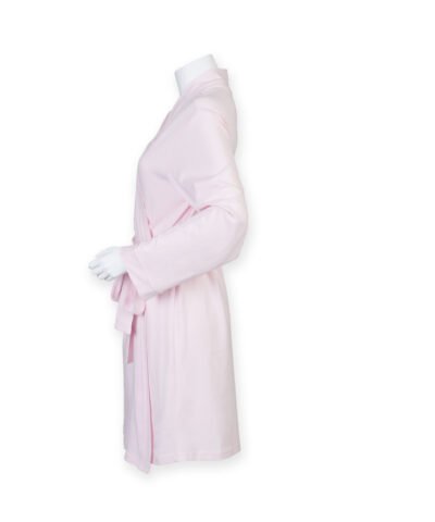 Kimono-style cotton bathrobe. Belt loops. Belt of the same material as the bathrobe. Length: under the knees.