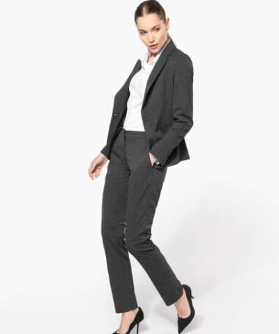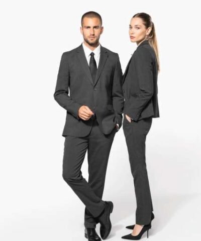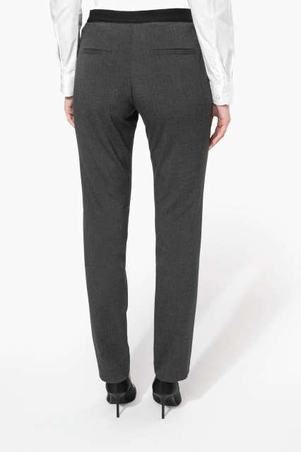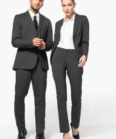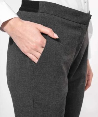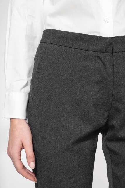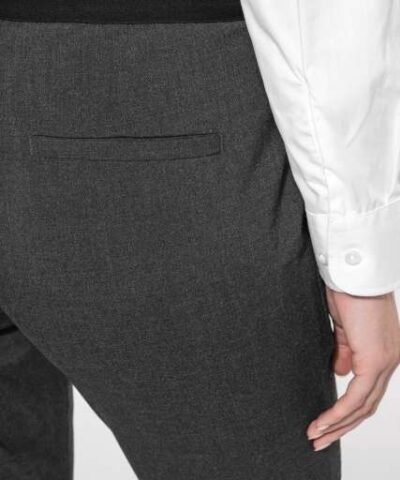 64% polyester / 34% viscose / 2% elastane;Slim fit trousers;2 front Italian pockets and 2 back pockets with piping;Zip fastening with concealed hook and button;Elasticated waistband at the back for optimal comfort;Inside leg: 30 inches (78 cm);Trouser legs with invisible hems;Certified STANDARD 100 by OEKO-TEX®N° CQ1007/8. IFTH;