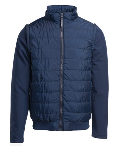 Quilted jacket with removable sleeves. Combination of 2 materials: padded body, sleeves and Softshell sides. Possibility to add hoods Ref. PK995 – PK996 – PK997 page 196 (zip hidden in collar