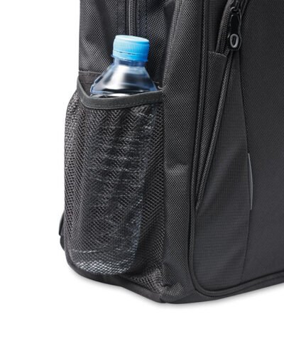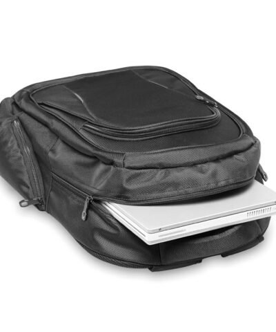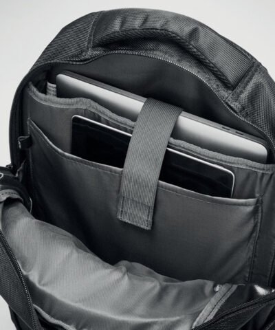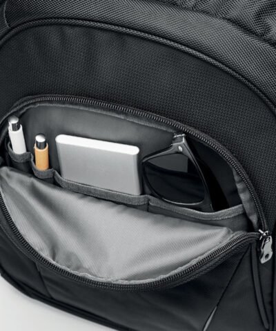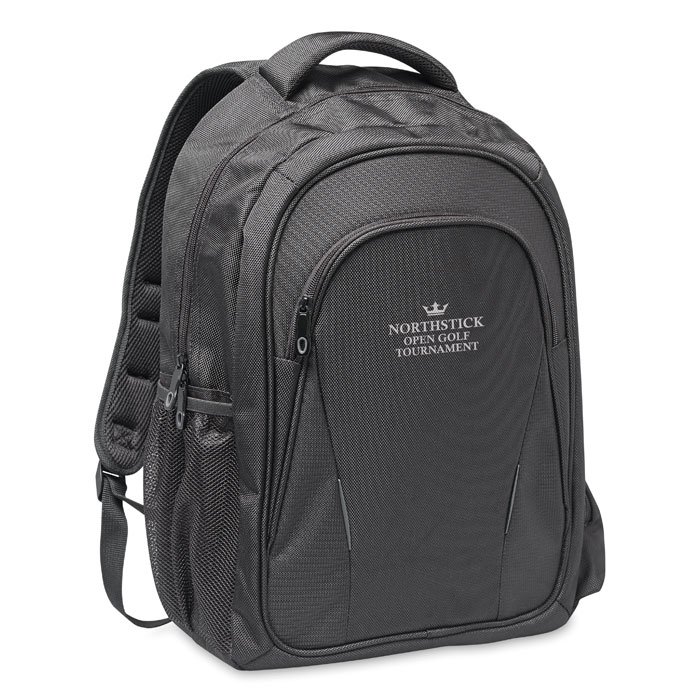 15 inch laptop backpack with compartments. Including several pockets and pen holder. Padded back and shoulder straps. 1680D polyester.