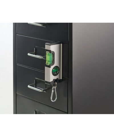 Mini magnetic double spirit level in aluminium case with carabiner. The carabiner is not for climbing (non-professional use).