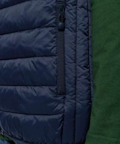 Plain colors: 100% polyamide;Marl Silver: 70% polyester/ 30% polyamide;Marl Dark Grey: 70% polyamide / 30% polyester;Polyamide inner lining;Warm and ultra-light;Compressible in its storage bag;2 zipped pockets in front;Contrasting interior: Convoy Grey for Black. Red. Marl Dark Grey and Marl Silver Navy for Light Royal Blue and Navy White for White;