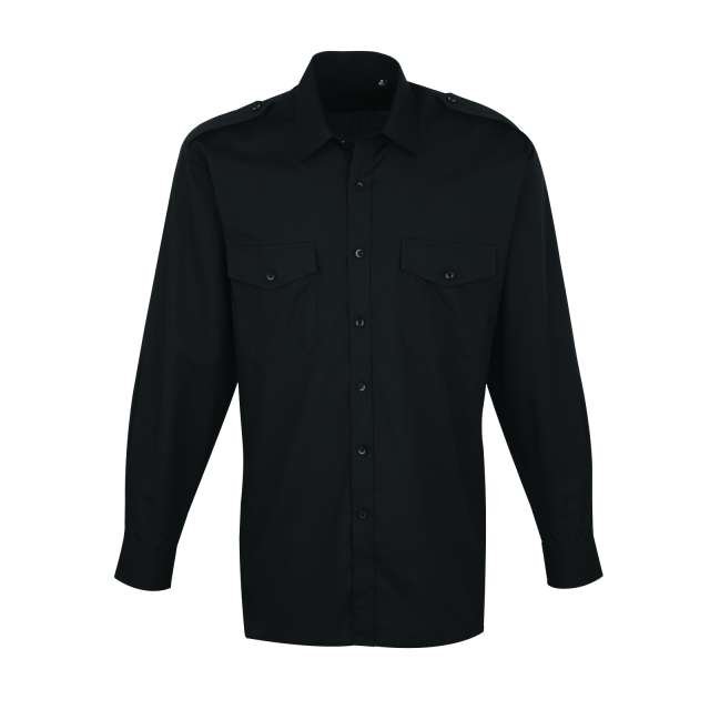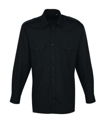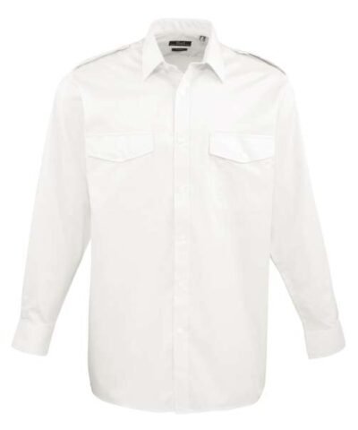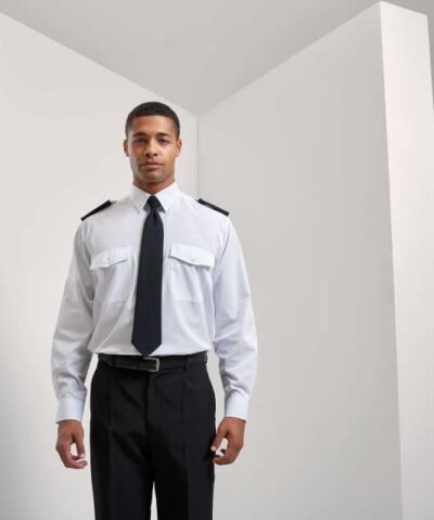 Fabric;65% Polyester. 35% Cotton Poplin;105gsm;Features;Stiffened collar;Two Mitred chest pockets with button flaps;Combined pen pocket on the left breast pocket;Long sleeves with button fastened cuffs;Tabs for Epaulettes on shoulders;Easy care;Classic fit;