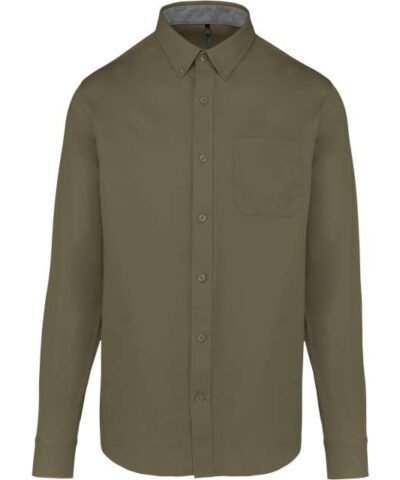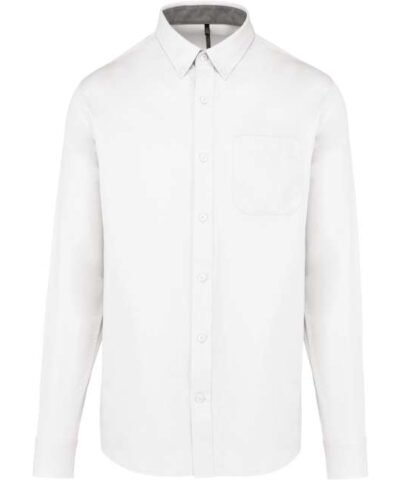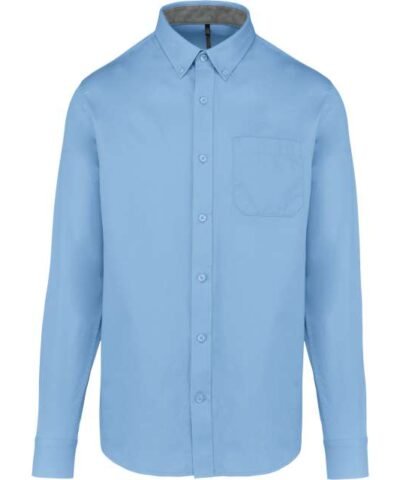 100% cotton;Twill fabric with peached soft touch;Button-down collar;Matching buttons;Chest pocket on left side;Contrast Oxford silver inner collar stand and cuffs;Back with 2 side pleats and lined yoke;Felled seam finish;Adjustable cuff with button pointed tab end;Spare button;Certified STANDARD 100 by OEKO-TEX®N° CQ1007/8. IFTH;To support sustainability. this product is no longer individually packaged – our stock is mixed;