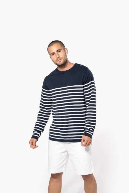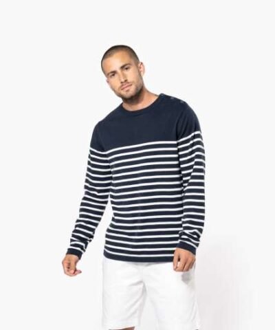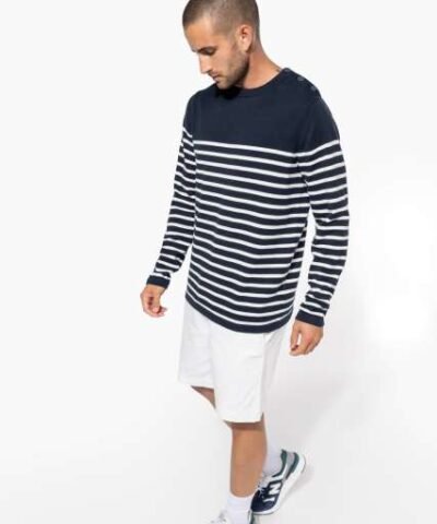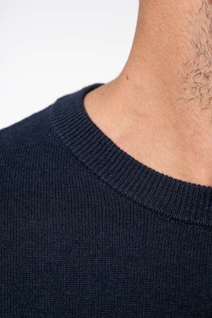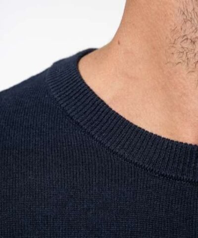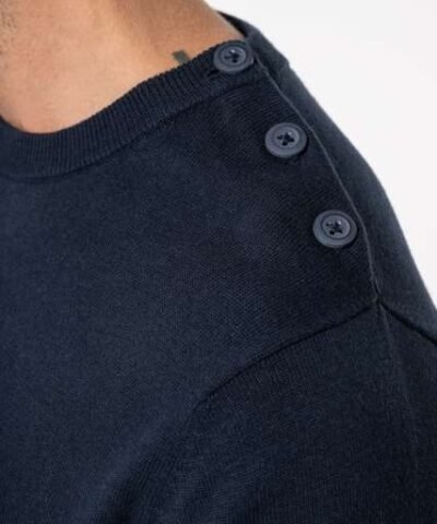 100% cotton;Gauge 12;Left shoulder opening with 3 matching buttons;1×1 rib neck;Double thickness knit cuffs and hem;