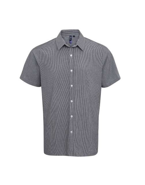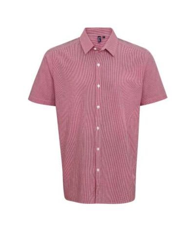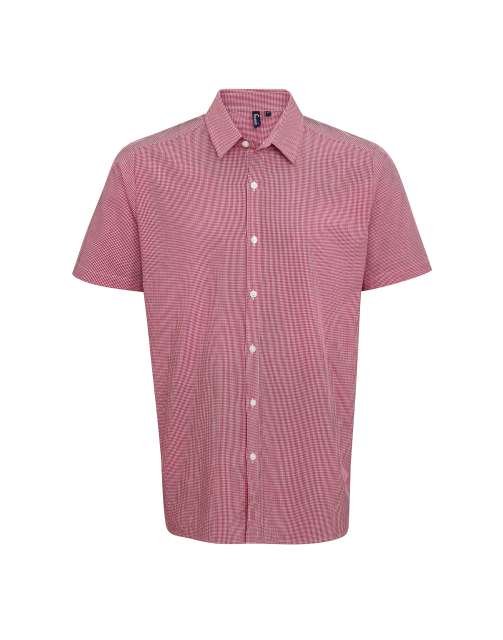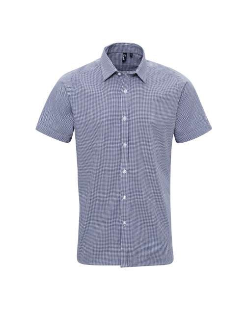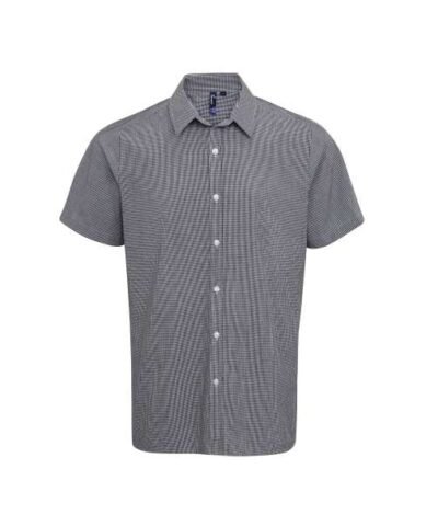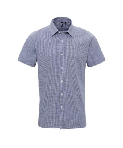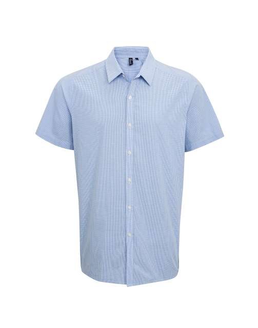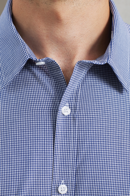 Fabric;100% Cotton Yarn Dyed Poplin;115gsm;Features;Charming Gingham Microcheck pattern;Soft collar styling;Short sleeves;Modern fit;